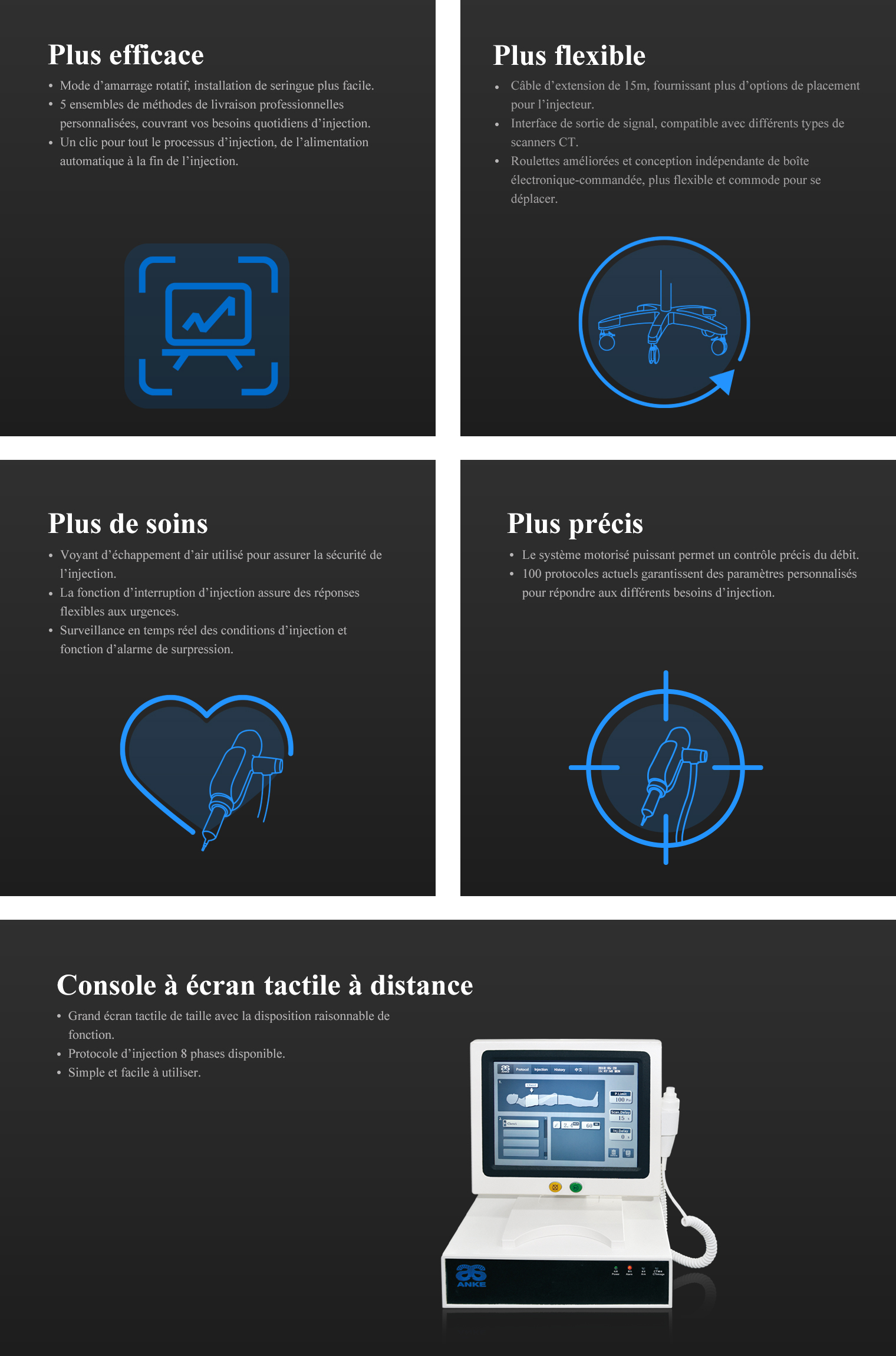 La nouvelle structure, légère et flexible, vous fait gagner du temps et des efforts; Des seringues bien conçues de capacités A et B ne conviennent pas seulement à l'amélioration CT des adultes, mais également à l'amélioration CT et à l'angiographie des en