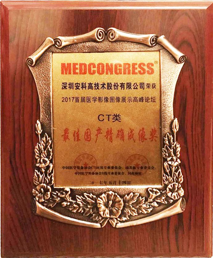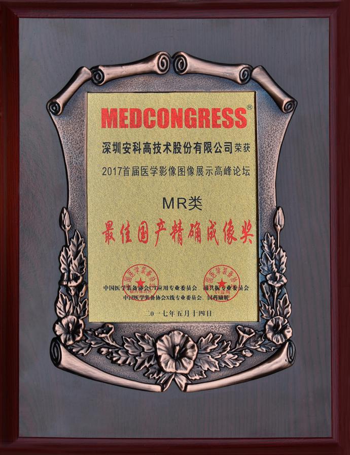 近几年来,国家政策频出,医学影像诊断中心、分级诊疗、医联体建设即将迎来爆发期,为促进中国医学影像事业发展,以及为众多患者提供高清质量医学影像诊断技术,本次高峰论坛从医院用户角度就X光、CT、核磁、AI、创新等领域征集了大量优秀医学图像案例,并从学术角度进行专业点评,同时向优秀企业代表颁发荣誉证书。作为中国MRI/CT产业的开创者和领军企业,深圳安科高技术股份有限公司凭借雄厚的实力和精准的图像质量荣获本次MRI/CT类两项“最佳国产精确成像奖”。