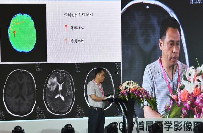 深圳安科的联合研究单位辽宁省葫芦岛市肿瘤医院李育新主任上台发言,主讲课题为“APT(酰胺质子转移成像)和FAST 3D/4D(动态增强)在1.5T上的临床应用”,就SuperMark 1.5T 超导磁共振成像系统在高级应用功能上的临床图像案例进行了详细展示,得到了现场多位专家评委的称赞。评委们在充分肯定安科永磁系列对中国MRI的历史贡献的同时,也对安科高场MRI取得优异成绩表示祝贺,在经过认真论证后给予了深圳安科MRI类 “最佳国产精确成像奖”!